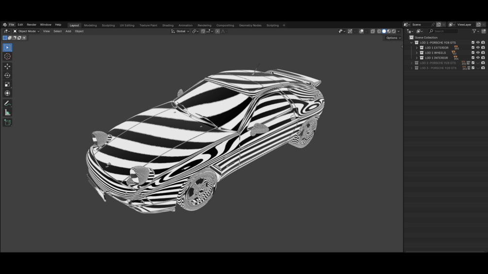 Here is a modeling reproduction of the Porsche 928 GTS. I used a process similar to Porsche to rebuild this car. This model was created with Autodesk Alias and then converted into FBX (.fbx) for import into Blender (.blend).