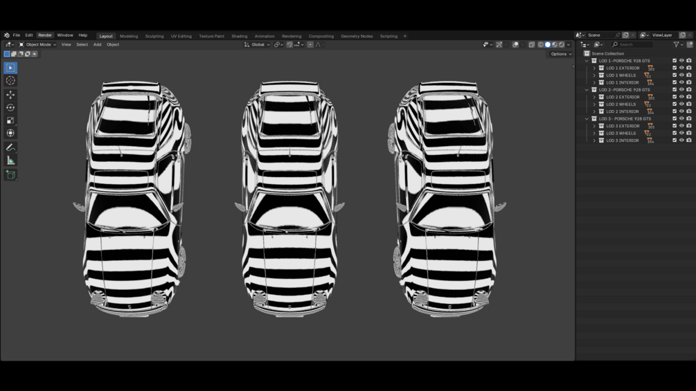 - 1 Blender file with the 3 LODs meshes -> Only the mesh of the car is provided there is no texture !