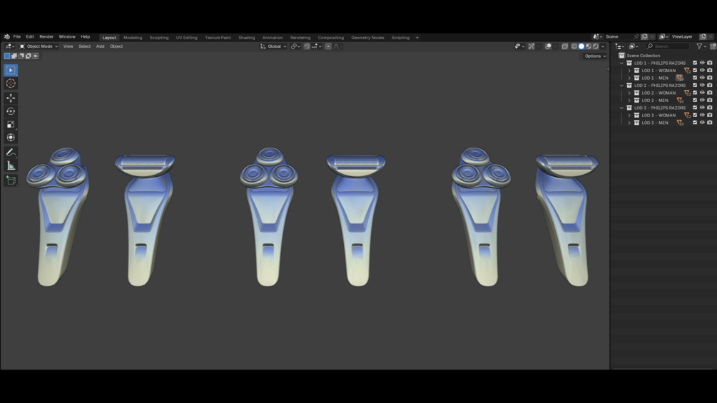 • 1 Blender file with the 3 LODs meshes -> Only the mesh of the product is provided there is no texture !